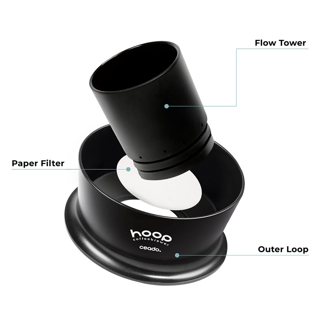 The Hoop or Ceado method is new. Hot Water is poured into tower, and the hot water seeps through the side holes and mixes very well with grounded coffee powder which has been placed inside. Then the mixture releases the aroma of coffee; enjoy the aroma and it will be should be good. Then the water gets filtered through the filter-paper nicely. Post filtering, I would like to say the Coffee has been enriched. Lovely and cute process.