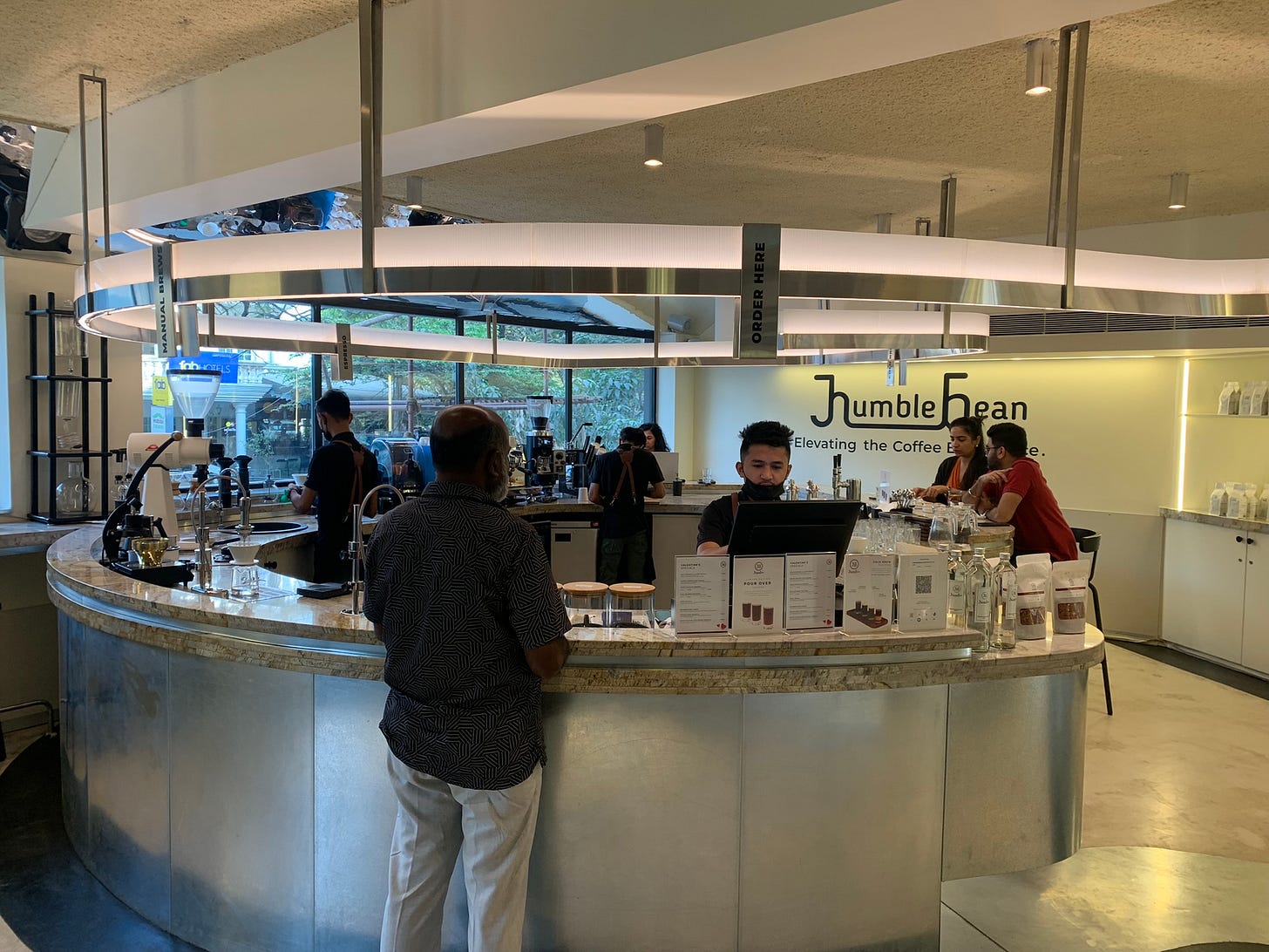 Their Coffee Academy which is located on the first floor of the cafe started by offering free assessments of farmers' yields, enabling them to enhance quality, fetch better prices, and understand the true taste of their coffees. Over the last six years or so, this gradual process has culminated in the establishment of HumbleBean Concept Cafe, symbolizing their commitment to enriching coffee knowledge and empowering farmers in India.