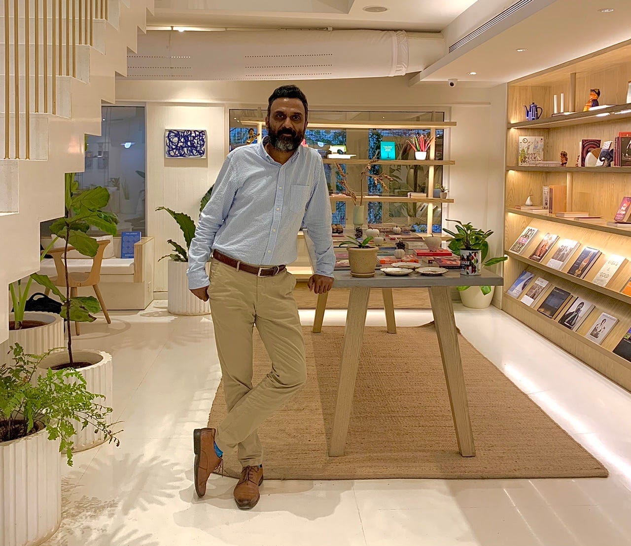 Araku, the Café is spread across 465 sq mtr and two levels, is designed by New York based Architect Jorge Zapata and Delhi based Shonan Purie Trehan, of Labwerk. A fully sustainable vision comes to life, with bamboo chandeliers, recycled paper and clay planters, recycled metal shelves, recycled paper vents and more. ARAKU Coffee collaborated with the best design houses in India to produce bespoke furniture and products for the café. A rotating curation of contemporary art fills the walls of the cafe. The art programme is run in collaboration with Mumbai’s Tarq Gallery. The bookstore, tucked behind the floating stairway, features a handpicked selection of critically acclaimed, rare and essential literary work. Plants from Araku not only breathe life into the space, but also form a bridge between the bustling city centre and the lush plantations the coffee comes from.
